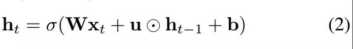 (نویسندگان مقاله در این شبکه idnRNN از ضرب هادامارد (درایه ای ) استفاده می کنن به این معنی است که هر نورون یک وزن مجزا داره که به آخرین حالت پنهان آن متصل هست. ضرب هادامارد دو ماتریس A و B را به صورت A o B نمایش داده میشه . تغییر عمده -> (u o ht−1)